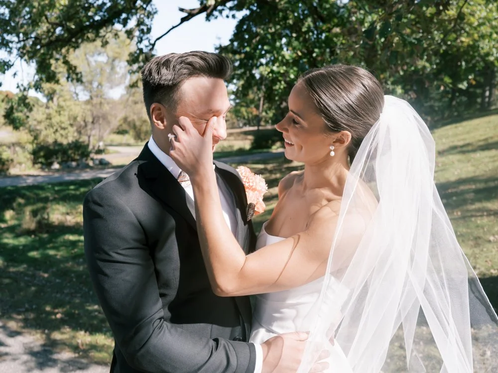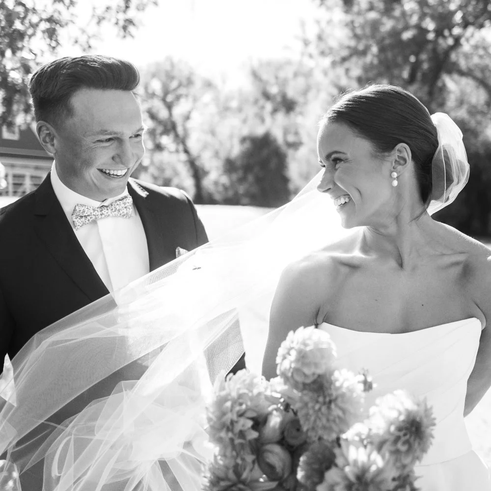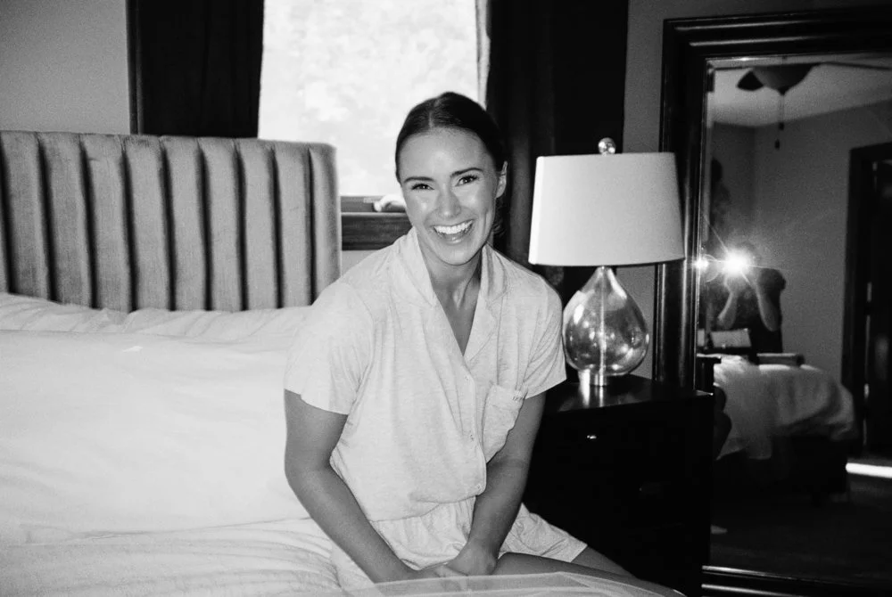 My approach to capturing their wedding day incorporated a mix of film cameras with digital. I wanted to capture their playful love for each other and Emma’s deep relationships with her sister and friends.. Using flash on film created a very in the moment, modern feeling to her photos and using medium format for couples portraits on Lake Minnetonka and on the grounds for golden hour at Bavaria Downs created a timeless look and feel that will never go out of style.
